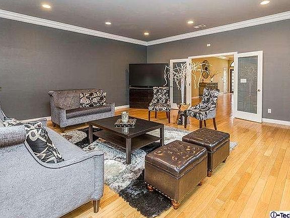 Tastefully remodeled in 2006 with approx. 10' high ceilings, hard-wood floors, recess lighting, crown moldings, floor to ceiling porcelain tiled bathrooms, huge kitchen with authentic granite tops, custom cabinets and a wine cooler. Handmade, iron door inspires every visitor, which takes you into an absolutely breathtaking house. 2 of the bedrooms have their own bathrooms and wall-to- wall closets, master bedroom has its own walk-in closet and large bathroom beautified with custom tiles, all-glass shower, rain shower head and a triangular jet tub. Huge family room and dining room with the attached office space will give you a picture of perfect entertainment area. Ceilings, walls and floors have insulation in them. Windows are double paned, making this house super quiet and energy efficient. Tankless water heater and the drought friendly synthetic turf on the front lawn. It has an all-around security system, complete with door, window and motion sensors, giving you that safe and secure state of mind you expect from a house. It has 2 master bedrooms, a custom paved stone driveway up front and a custom concrete backyard complete with a pond, BBQ area and sun shade sails.