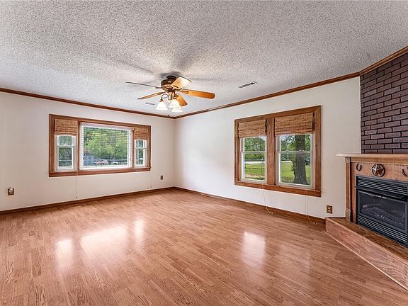 Do you want to be in the country but close to town? This charming home with 2.6-/+ flat acres is the perfect property for you. Freshly painted, 3 bedrooms, 2.5 bathrooms, and 2 flex rooms that could be used for office or craft room. The primary bedroom is spacious and has a patio door to the back yard. You will love the walk-in tub to relax in and walk in closet with built in chests. The kitchen is spacious with a moveable island and the dining area is big enough for a large dining table and has lots of windows for your plants. You will enjoy the large covered deck that is great for entertaining. The men will love the small building with electricity and a large shop/garage. You can stay warm with central heat, wood burning stove, and gas fireplace. The acreage is beautiful and very usable for livestock and garden areas. There have been as many as 4 horses on the property. The well water is very good and it has a water softener system that is serviced every year. Only 10 minutes to Harps in Tontitown.