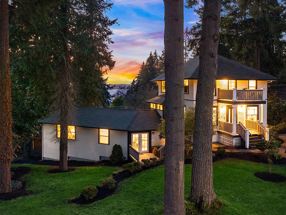 Welcome to a RARE find in coveted Seahurst! Nestled among 100 year-old fir trees in a park-like setting sits this remodeled Colonial with stunning western views of Puget Sound, Olympic Mountains and fabulous sunsets. Historic charm has been preserved with thoughtful renovations that welcome modern comfort, convenience and peace of mind. Multiple entertaining spaces in and out. Entire 2nd floor primary suite with spa-like bath, office/2nd bedrooms. A welcoming living room with fireplace, view kitchen with dining, separate wing with 3 more bedrooms, a bonus room, media room, large laundry room, and a massive 2-car gar with workshop plus private beach access! Blocks to Olde Burien with trendy pubs/eateries and boutiques, beautiful Seahurst Park on the water and 10 minutes to Sea-Tac or 15 minutes to Downtown Seattle!