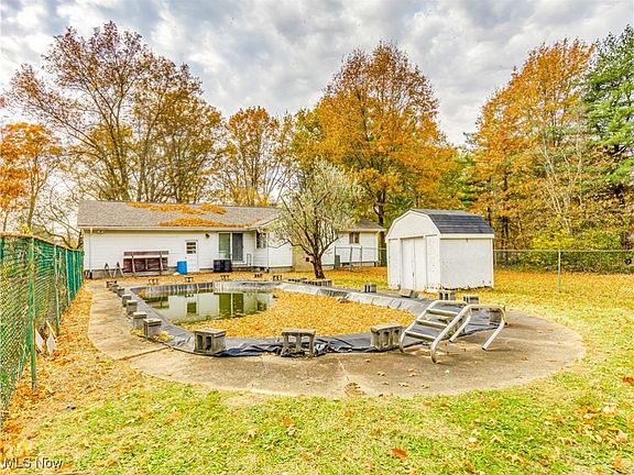 Discover this original-owner 3-bedroom, 1.5 bath ranch home, set on over 5 private acres. The main living area features hardwood floors throughout, with a cozy fireplace in the living room and a dining room that opens to the backyard via sliding doors. The updated main bath adds a touch of modern comfort. A second fireplace in the unfinished basement offers untold possibilities for a future finished space. Outside, enjoy the peaceful, wooded rear lot, ideal for privacy and relaxation. There's a fenced-in inground pool (unused for several years, condition unknown), and outbuilding, and a shed for extra storage. Located in a quiet area, yet just minutes from highways, shopping, parks, medical facilities, and restaurants, this property offers a blend of seclusion and convenience. Bring your personal touches and make this charming home your own!