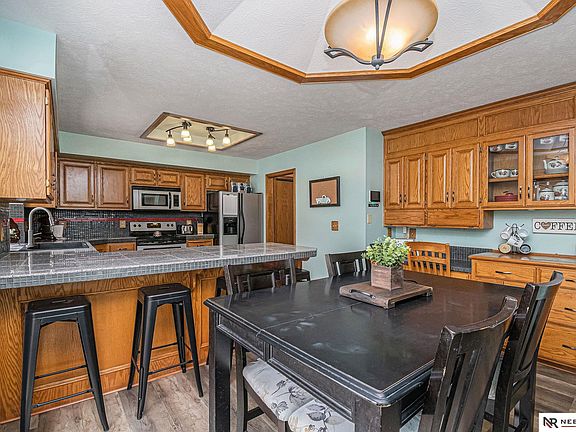 Welcome to 14933 K St in The Colonies subdivision! This stunning PRE-INSPECTED 3-bed, 3-bath home features a new roof(2019) and a large driveway. The backyard boasts a 20 x 60 patio, a beautiful pergola and a storage shed. Inside, you'll find newer LVP flooring and a remodeled bath on the main level. the spacious kitchen has ample cabinet space and an office nook. Upstairs are three spacious bedrooms with large windows and a primary bedroom with a walk-in closet and en-suite bathroom. The finished basement is perfect for a media room, game room, or home gym. New furnace (2022). Don't miss this opportunity!