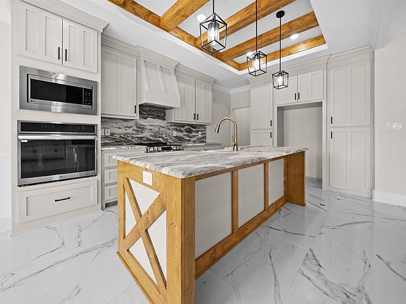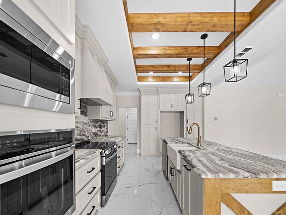 Welcome to this stunning 2025 new construction in Turtle Creek Ranch in Flint TX. This custom farm house meets modern sleek, brings together a perfect balance throughout this 4 bedroom 2 bath home. Gorgeous Calacatta porcelain marble flooring greet you as you step into the massive entryway. The kitchen and living room are an open concept offering tons of cabinets, large pantry and beautiful granite counter tops, while the split floor plan offers a primary suite with privacy and space! The generous sized primary bedroom offers plenty of space and en suite bathroom is built for both him and her, from counter space to closets! On the other end of the home you will find 3 additional rooms and another full bathroom. Other amenities include a mud space, sink in laundry room, custom molding and finishes throughout with an oversized garage for plenty of storage! Step out onto your backyard oasis for your family get togethers and grilling. The outdoor kitchen includes a Bull grill, mini fridge, and sink for a full service experience. This home sits on a 3/4 acre lot and has amazing views of the surrounding county land and pastures. Located just 8 minutes from Tyler for your convience. Call today to schedule your showing!