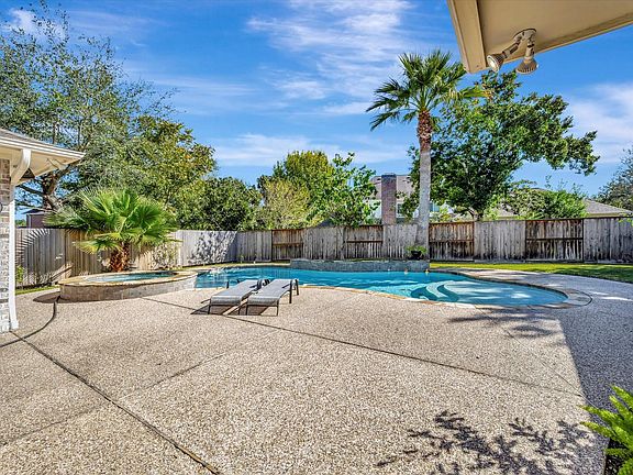 Welcome to Wilderness Cliff Ct, a custom five bedroom home built by The Mitchell Co, one of Bay Oaks' original builders. This property boasts a three car detached garage, large heated pool, and spa. The updated kitchen features granite with tiled backsplash, while the spa-like primary bath includes a dual shower, soaking tub, and oversized walk-in closet. Enjoy the updated lighting throughout the home. The primary bedroom offers a seating or exercise area overlooking the backyard pool. Upstairs, a great game room accompanies four additional bedrooms with Jack and Jill baths. Situated on a wooded corner lot, the brick and Hardi Plank exterior and roof from 2017 complete this spacious property.