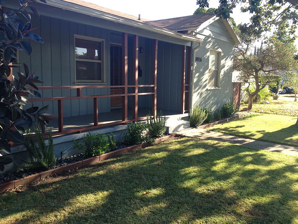 A true gem! This cozy vintage home built in 1949, 2 bed/1 bath, sits on a 6750 sq ft lot with lush green lawns, 2 car detached garage with 2 bonus storage areas. Newly remodeled Kitchen & Bath, all appliances included. Vintage bathroom with ball and claw tub, glass vessel sink and tiled floors. Beautiful Hardwood Floors throughout, Crown Moldings & Fireplace. To top this all off, the house has 100% solar power panels (non leased, fully owned and 220V outdoor AV electric car charger, for energy efficiency and monthly savings. An added 400 sq ft. Bonus Room (not permitted). Backyard fully private with theater screen, raised vegetable garden beds with an array of trees; avocado, lemon,