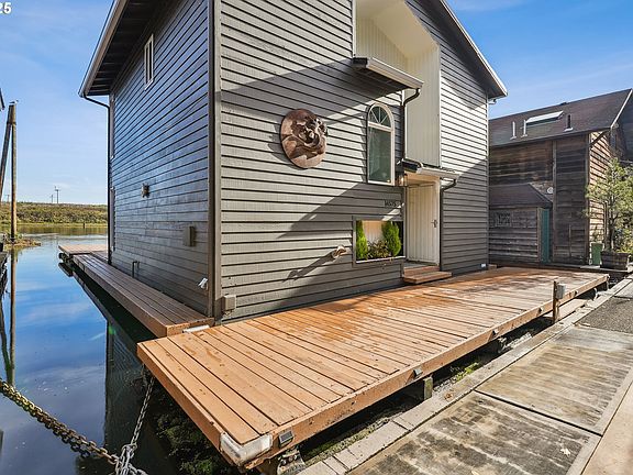 Stunning fully renovated and remodeled floating home in the highly sought-after Bridgeview Moorage on the Multnomah Channel, just minutes from Sauvie Island Bridge and only 15 minutes to the Pearl District and downtown Portland. This beautifully updated residence offers 1,482 sq ft of thoughtfully designed living space with two primary bedrooms, each featuring ensuite bathrooms, large picture windows, and access to the upper deck overlooking the river. An upstairs office provides the perfect place to work or unwind while enjoying sweeping water views. The kitchen has been completely upgraded with brand new cabinetry, modern appliances, and high-end finishes, while all bathrooms feature new tile floors, tiled showers, and stylish vanities. Outdoor living shines with an expansive swim float deck and covered patio, ideal for entertaining, lounging in the sun, or watching wildlife and passing boats. Additional upgrades include a brand new metal roof for long-term durability and the convenience of boat parking right at your front door. Surrounded by natural beauty and the peaceful flow of the Multnomah Channel, this home delivers a true floating lifestyle, and the float has recently been rated a solid 4. Don’t miss this rare opportunity to live in one of the river’s most desirable close-in locations.
