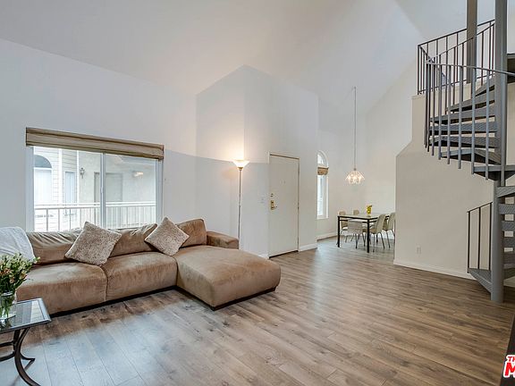 Bright and beautiful two bedroom two bathroom, plus loft, in a charming Contemporary condominium building located south of Ventura Blvd in Sherman Oaks. The bottom level of the home boasts an open floor plan that includes hardwood inspired laminate flooring, a dining area and kitchen with plenty of cabinets for storage. The living room is enhanced with high ceilings and a stylish fireplace. A master suite offers an en-suite bathroom and walk-in closet. The second bedroom is generously sized and includes a wall of closets. Finally, an updated full bathroom completes the first floor. A spiral staircase leads up to a loft that is a perfect setting for a home office, reading nook or guest space. From the loft a sliding glass door opens to a spacious rooftop deck with hillside and valley views. This tranquil, private space is ideal for year round entertaining, gardening or relaxing in the Southern California sun! Additional amenities of this home include: 2 tandem parking spaces in the gated garage, private storage space, central air and heat, community pool, spa and gym, community laundry room and parking for guests. Easy access to the Westside and located within close proximity to Whole Foods, The Arclight Theatre and trendy shops, restaurants and entertainment on Ventura Blvd. HOA dues include water, trash, building maintenance and earthquake insurance. No FHA