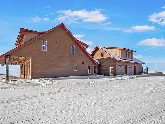 Welcome to this stunning 4-bedroom, 3.5-bathroom modern-rustic home, nestled on a 2-acre lot in the heart of the rolling hills of North Dakota! With soaring 27-foot ceilings and expansive windows, the open-concept living space is bathed in natural light, offering breathtaking views of the vast prairies that stretch for miles.