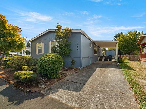 YOUR HOME AWAY FROM THE CITY - OREGON CITY RETREAT! Tucked off the beaten path in one of Oregon City's most sought-after manufactured home communities, this charming residence offers the perfect blend of country serenity and modern convenience. Safe, quiet, and beautifully maintained, the park feels like a peaceful rural escape-yet you're just minutes from shopping, restaurants, and I-205. Step inside to discover an oversized kitchen that truly stands out, featuring rich hardwood cabinets, a large island with extra storage, and space for a full dining table. All appliances are included, making move-in a breeze. The formal dining room flows seamlessly into a spacious family room, complete with a nearly new pellet stove to keep you cozy all winter long. The primary bedroom easily fits a king-size bed and boasts a luxurious en-suite bath with a soaking tub and stall shower. Two additional guest bedrooms and a nearby guest bath offer comfort and flexibility. The utility room includes a washer and dryer, plus a built-in folding counter and drawers for added storage. Step out back to enjoy summer evenings on your private deck, with room for gardening, landscaping, and outdoor entertaining. Additional features include: Carport with parking for two, Home has all new Cement Fiber siding! Storage shed Community playground, dog park, RV storage, and walking trails Space rent: $843.95/month (includes sewer and basic Comcast cable) This is more than a home-it's a lifestyle. Come experience the quiet charm and convenience of country-style living just outside the city. MORE PICTURES TO COME! NEED FINANCING? ASK ME TODAY!