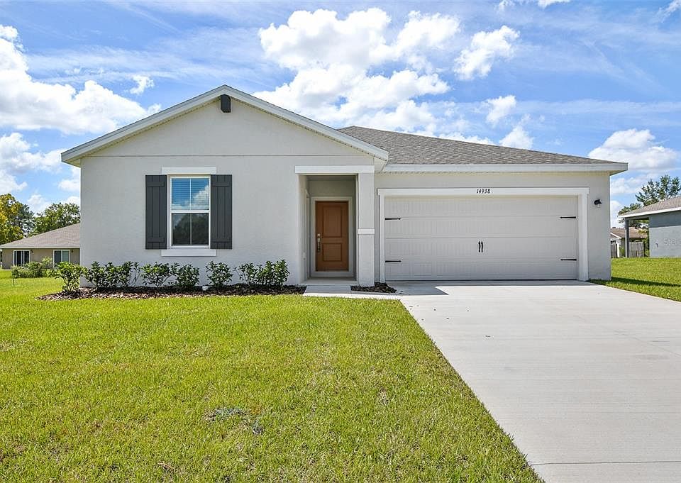 Move to Aspire at Marion Oaks, Ocala's most exciting new construction community! We've started construction on this exciting Passionflower II home design which features an open layout with 9'4" ceilings, a cozy primary suite, and dining area adjacent to the kitchen. Our popular Loft Look - a designer-curated collection of on-trend finishes - has been chosen for this home. Nowhere does the Loft Look come to life more than the kitchen, which will feature navy trending and timeless cabinets, grey polished quartz countertops, tumbled white artisan subway tile, pendant lighting, blue floating shelves, a stainless steel undermount sink and more. A close second to that is the primary bath, complete with a crisp white furniture-grade vanity, quartz countertops, tumbled artisan subway tile on the shower wall, framed mirrors over the dual sinks, and more. You'll love the contrasting yet complimentary finishes of the Loft Look which create a cohesive style throughout the entire home. The Passionflower II is also a multi-generational home -perfect for parents, children and guests! The Extra Suite+ offers a private entrance off the main entrance, a separate living area, bedroom and bathroom. 2" faux wood white window blinds are included, making for an even more seamless move-in experience. Enjoy all the benefits of beautiful new construction homes without HOA restrictions.