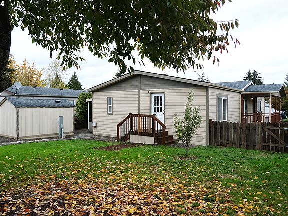 All new exterior siding and trim! Charming updated manufactured home in a highly sought-after neighborhood. 3-bedroom, 2-bathroom, offering 1,296 square feet of comfortable living space. Nestled on a level, fenced lot, this home is perfect for those seeking both style and functionality. With a covered porch, this home opens to the living room/dining room/kitchen view. A great room flow with its open floor plan that’s bathed in natural light, enhanced by vaulted ceilings and skylights in the kitchen. The heart of this home, the kitchen boasts an abundance of counter space, ample cabinetry, a walk-in pantry, modern stainless-steel refrigerator and electric range, a double sink, and built-in dishwasher, new flooring and custom painted cabinets. The primary suite features a spacious walk-in closet, new carpet, a luxurious ensuite with a walk-in shower, and a private exterior entrance to the backyard. The second bedroom is generously sized with vaulted ceilings, while the third bedroom offers cozy new wall-to-wall carpeting. All new trim, baseboards, and custom interior paint throughout the home. Outside, the convenience of a tool shed for extra storage, a carport with an extra-long driveway for ample parking, and a fenced backyard with refreshed landscaping, perfect for outdoor entertaining or relaxing. With its thoughtful updates and great flow, this home is a must-see! The community of Country Village Estates offers common areas, park with pathways, dog park area, and a basketball court. RV storage is available for an additional $75/month. Home space fee includes sewer and basic cable. LA is seller.