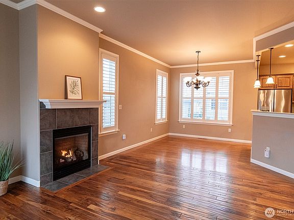 Welcome to easy living in this hard to find 3 bedroom, beautifully maintained 55+ community condo! The spacious main-level primary suite features a generous walk-in closet, and a 5-piece bathroom. The bright, open concept living area includes a cozy gas fireplace and wood floors throughout. Walk outside to an enclosed private patio, with a power awning for adjustable shade. The kitchen offers stainless steel appliances and Corian countertops. Upstairs, two additional bedrooms and a full bath provide flexible space for guests, hobbies, or an office. The 2-car garage is equipped with Craftsman cabinetry for exceptional storage or a mechanic's dream. Enjoy access to the community pool and the ease of low maintenance living in Ambercrest.