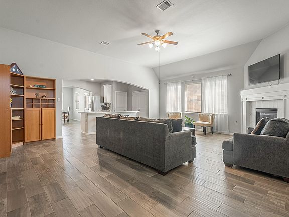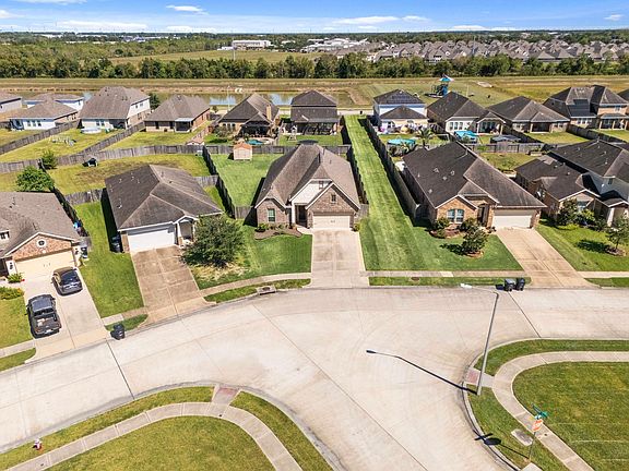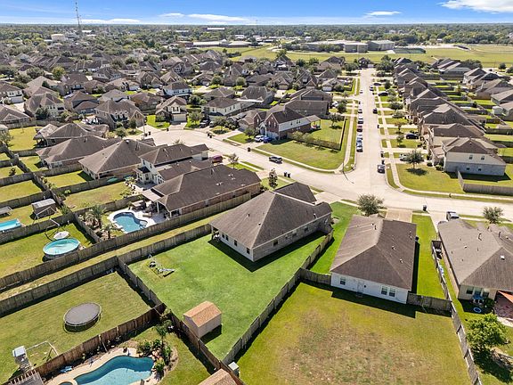 Beautiful single story home situated on an oversized lot with no direct front neighbors. Built in 2017, this 4 bedroom, 2 bathroom home offers an open concept design with upgraded finishes throughout. Gorgeous brick & stone exterior. Upgraded wood floors flow throughout the main living areas. Gourmet island kitchen w/ quartz countertops, seamlessly opens to the spacious Family room w/ gaslog fireplace. Spacious Primary suite w/ spa-like & walk-in closet. Two of the bedrooms + bathroom are located off the entry while the third bedroom is located near the family room w/ french doors & a closet, could be a bedroom or study. Covered patio, huge backyard w/ storage shed & 2 car garage complete the package. Easy access to Hwy 6, Hwy 35 & FM 518. Just minutes away from local dining, shopping & entertainment. Schedule a showing today!