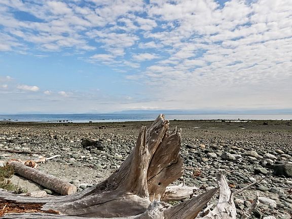 An iconic waterfront property. Here's an amazing opportunity to own 10+ acres with 300ft of private oceanfront on the desirable Wilkinson Rd. This unique offering has approximately 2 acres on the water, & 8 acres, with stunning views of the Northern Strait of Georgia and Coast Mountains, on the bench above. This large property, zoned CR-1, would allow for 2 full size dwellings or a possible subdivision. A 2 bed, 1bath, 800 sqft cottage is a snapshot from generations before, perfectly preserved, a time capsule of memories on the beach. This home has municipal water, septic system, metal roof, AC Minisplit, and a renovated bathroom. Nestled on a private no-through road, this property is just minutes away from the airport & amenities of town.
