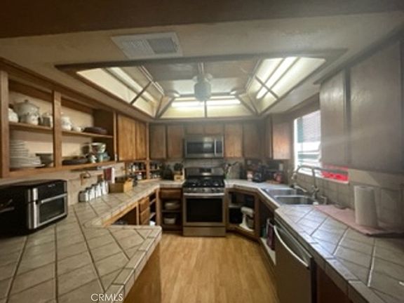 - Brick Walls, Ceiling Fan(s), Tile Counters