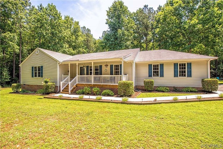 Want country living but with the ability to Work from Home? This beautiful and meticulously maintained one owner ranch on 5 acres in desirable Prince George County provides just that!! Rural Band FIBER optics in a very private park like setting with a garden -just in time to enjoy fresh vegetables! This beautiful home has 3 bedrooms, two baths and a large attached side entry garage. New Top of the line engineered vinyl plank waterproof flooring and a new Goodman HVAC and all new appliances- Stainless Refrigerator, Stove, Microwave and Dishwasher were all purchased within past 1.5 year. All three bedrooms are spacious with the Master having two separate walk in closets and large en suite private bath with jetted tub and separate shower. Home is professionally wired for home generator and a vapor barrier and new insulation was recently installed in the crawl space in 2021. The fireplace was cleaned and inspected last fall and there is a carbon monoxide detector in home. Washer and dryer, kitchen island and workbench in garage to convey. Though no known defects, fireplace, gas logs are sold AS-IS. PG SCHOOLS!! Showings begin Thursday June 16. Thank you for your time and interest!
