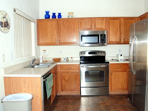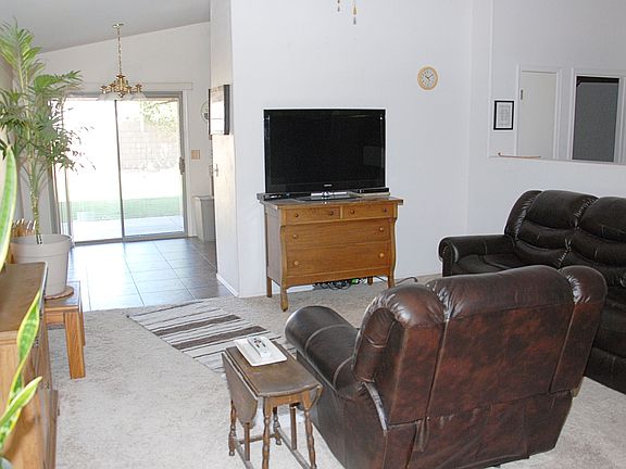 Exceptionally well cared for home with 2 bedrooms, 2 baths and 10X10 open den which could be the 3rd bedroom. Stainless steel appliance package which includes, range, microwave, dishwasher, and refrigerator are only 8 months old. Great Room with eat-in kitchen, pantry, plant shelves, vaulted ceilings, just repainted inside and out. Both baths have new granite counter tops. New tile in kitchen and baths. Covered patio, pavers added to make sidewalks on the side to the 6 foot rv gate, looks professionaly landscaped. You and your buyers will not be disappointed when showing this one.Not short sale or bank owned. Quick Answers on your offer.