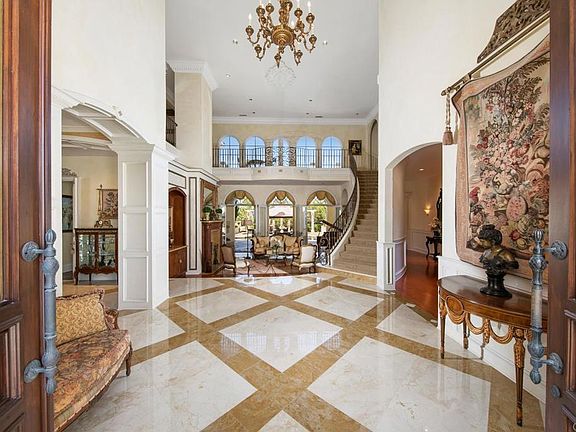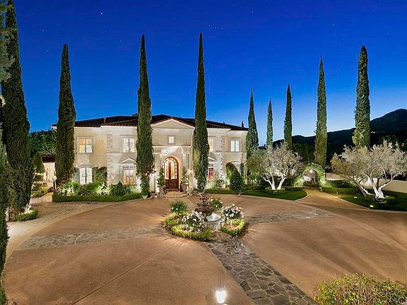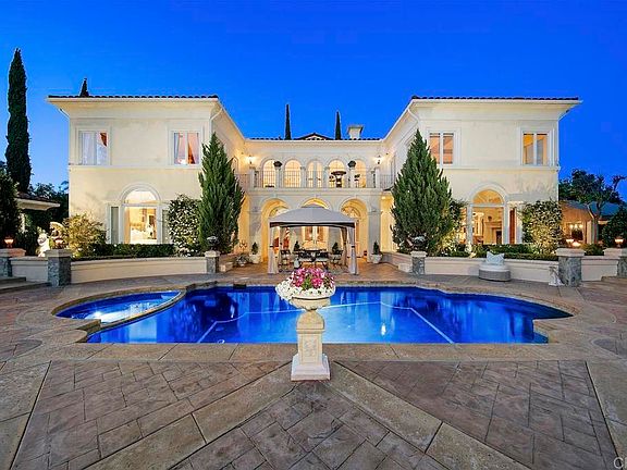 Welcome to this grand estate inspired by a majestic 14th century ITALIAN VILLA surrounded by lush European gardens. The over 1 acre, park like setting surrounding this sprawling estate offers the lifestyle and luxury resort amenities to captivate your soul & inspire your life. The moment you drive up to this impressive retreat, you know you’ve arrived someplace very special. From the old world motor court, mature olive trees, sculpted hedges, to the flowing fountains, this home truly takes your breath away. As you enter the villa, your journey begins with the swing of giant 12 ft solid walnut doors leading you to an elegant foyer with towering 2 story ceilings & a level of detailing & regal ambiance rarely found in homes today. Offering an open, sun filled design, this exceptional home boasts 6,618 sf. of luxurious living & intimate views from every room. The main level enjoys a grand entry with imported polished marble flooring, step into the stunning living room with 22 foot ceilings, large wood burning fireplace and new maple flooring, surrounded by floor to ceiling doors to the resort style pool deck. The foyer connects to a formal dining room where an imported Italian crystal chandelier sparkles under ornate ceiling and wall detail including its own classic fireplace. Enter the west wing to find an expansive “Great Room” boasting a recently remodeled gourmet chef’s kitchen w/ imported French 55" LaCanche Sully gas range & 2 ovens (gas and Convection), Miele Speed Oven, Miele Warming Drawer, 2 dishwashers, 3 sinks using Waterstone and Rohl fixtures, 48" SubZero fridge/Freezer, SubZero wine storage, Viking 36" freezer surrounding 2 islands built to period design topped with polished Calcutta Gold marble slabs. Great room has a cherrywood wet bar, large wood burning fireplace, hand scraped Walnut hardwood flooring and plenty of room to relax and enjoy views from the large western facing windows. Rounding off the main level, is an executive office built with solid cherrywood, a sanctuary master retreat featuring imported polished marble floors, Phylrich gold fixtures and a large spa-inspired Jacuzzi bath topped off with His and Her separate walk-in closets & Boudoir. A second recently remodeled bath captivates the modern theme. Artisan crafted hand forged handrails lead to the next level to access a billiard room connected to an outdoor terrace to experience sensational western valley views and amazing sunsets. Then a dedicated home theater projecting to a large 106" screen connected to a THX sound system for life like movie experience. Down the hall are 3-spacious and private bedrooms along with 2 full & 1 half bath. Designed for year-round enjoyment the outdoor experience offers a peaceful and picturesque destination, fit for a formal gala or casual gathering, featuring distinct vignettes with an abundance of amenities for gathering and play. At night, the house comes to life with strategically placed lighting to highlight its detailed architecture and majestic grounds. Entering the resort style patio, is perfect to enjoy private al fresco dining under a stunning backdrop of amazing sunsets to the sensational glow of the stars. Nearby is a European style, French grey bottom pool w built in fountain, transforming the pool into a dramatic water feature. Nearby is a large PGA style putting green, perfect for your short game, then the guest casita featuring an outdoor shower, full bath and possible 5th bedroom on the way to the English garden for an escape near a tranquil fountain. Off the nook is a large grassy area surrounded by mature shade trees, a covered cabana with fire-pit and nearby outdoor kitchen. A detached oversized 4 car garage is loaded with cabinets, workbench, ethernet ports, cable for your big screen and has surround sound speakers built into the ceilings - designed for more than just parking cars.