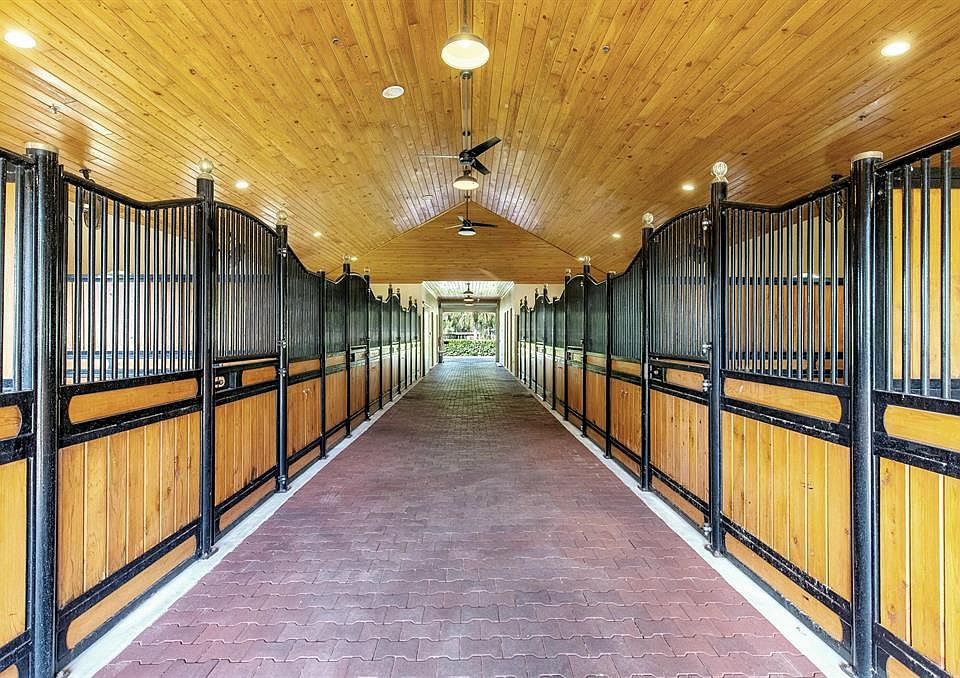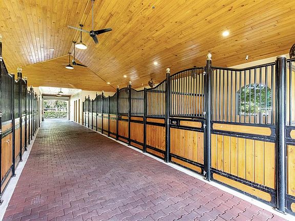 This Gorgeous center-aisle facility is just hacking distance to show grounds & awaits you with direct access to the Bridle path. There are miles of paths to explore and so pretty! Complete with 10 12x12 stalls and thoughtful touches, this newly built farm feels so elevated. The 100'x230' GGT arena is ready for your show season with full irrigation & beautiful dressage mirror or can be an awesome jumping facility. The 2.44 acres hosts luscious paddocks, each stall is outfitted with fans, central fly spray, cameras. Designed for the discerning equestrian, the beautiful tack rm, feed rm, laundry rm, & fully furnished apartment lend to a high end experience. Such a pretty gazebo and the onlooking patio are wonderful to host guests. This facility has a separate barn entrance and fully fenced!
