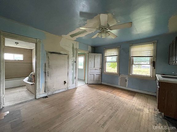 An early 1900’s farmhouse sitting on 4.25 acres just minutes from downtown Baraga awaits! House is being sold “as is”. It needs work- yes! But the end result will be gorgeous! From the covered front porch, wood shaker siding, to the hardwood floors and original trim and doors, there is character and charm throughout! The foyer is open to the living room and it also leads to the large eat-in kitchen. There is a bedroom located on the main floor, just off the kitchen as well as the bathroom and back entry/laundry room. Take the stairs to the second floor and you’ll find the 4 additional large bedrooms! Whether you keep the layout the same or change things up a bit, there is so many possibilities and potential! The home has a good roof and upgraded electrical, windows and exterior doors throughout! The field is a blank canvas with ample space to plant crops, large gardens, and house animals! Option to purchase additional acreage available! See survey- Lots B-E.