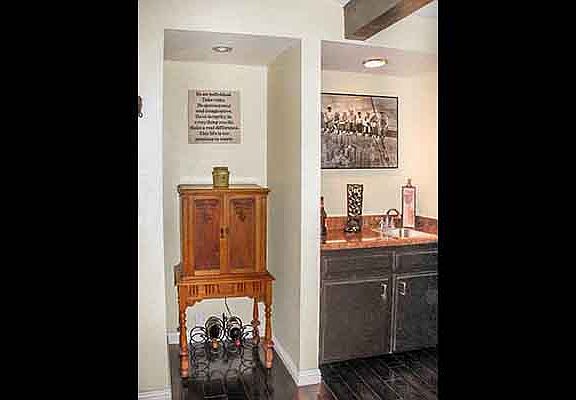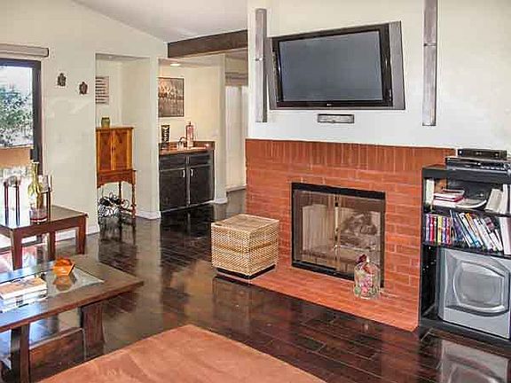 A top floor, end unit: super emotional and dripping with charm condo. Stunning living room has super high ceiling, w/b fireplace, beautiful hardwood floors, wet bar and balcony with views of trees and lots of natural light ! Kitchen is also fantastically done with travertine floors, granite counters, stainless steel appliances, and is next to an open, bright dining room filled with light with a 2nd balcony. Fall in love and move right in to this tastefully remodeled condo! Washer/dryer in unit! Small complex, only 12 condos, has a pool, spa, elevator and gym. Conveniently located near shops, malls, transportation? everything.