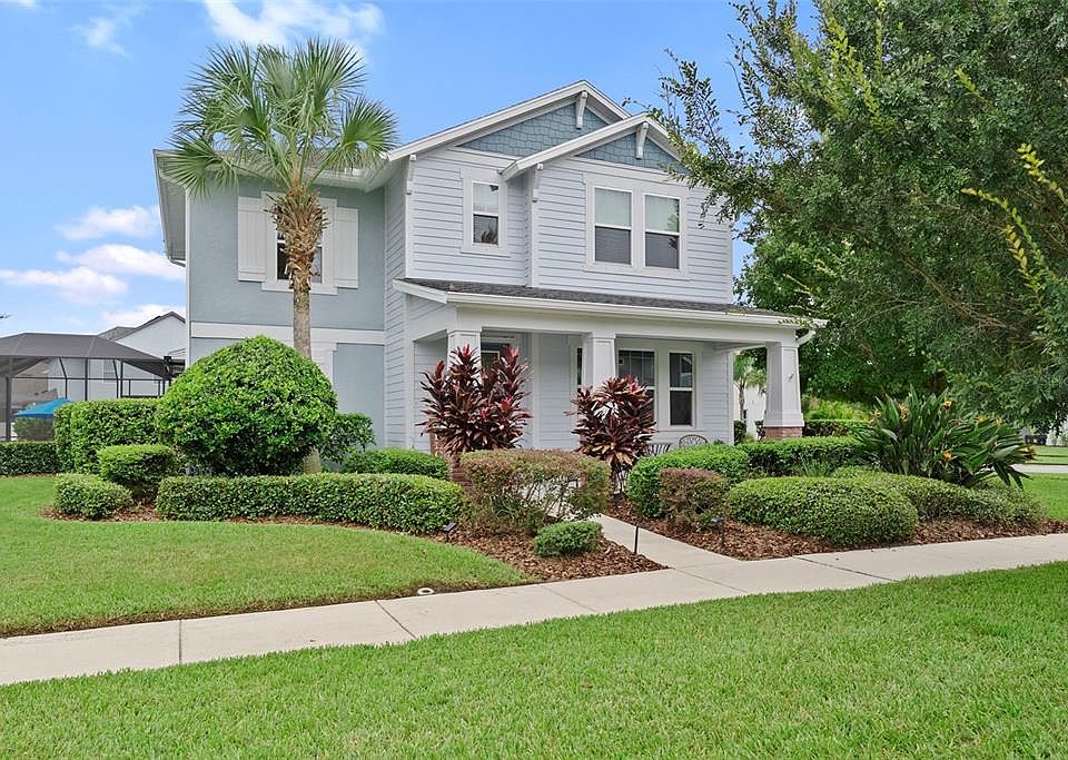 This is a special one…and it could be YOURS! From the welcoming front porch to the amazing custom outdoor space that includes a luxury saltwater heated pool and spa jacuzzi, sun shelf and conversation areas (chaise lounge area, picnic table area AND covered relaxing area). Combine these with the thoughtful interiors of nearly 2500 SF that include a fabulous open kitchen / family / dining space (with so much pretty natural light!), powder bath and a first floor home office, along with second floor privacy of 3 bedrooms, loft and laundry room. Built in 2018 by highly regarded builder, DAVID WEEKLEY, the floor plan and elegant, timeless finishes are thoughtful and with great quality. Home exudes pride in ownership with great investments by the original owners which include fully loaded custom pool package (glass tiles listello and travertine tiles), SOLAR PANELS (owned and will be paid off), new exterior paint, luxury vinyl plank flooring (first floor), brand new dishwasher and so much more. Home is located on an oversized nearly 1/4 acre CORNER lot, with detached garage. Neighborhood of ASTURIA, is a beautifully well-manicured, natural-gas community with resort style amenities that include a full fitness room, luxury pool and clubhouse space right off Highway 54 and convenient hop, skip and jump to the Veteran’s Express. Don’t wait to see this one - it is a move-in ready and a beautiful place to call HOME!