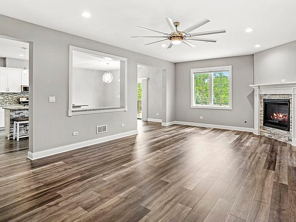 Built in 2019, this beautifully maintained 3-bedroom, 3.5-bath townhome offers modern finishes, a versatile layout, and serene pond views right from your backyard. Step inside to an open-concept main level featuring a bright living room with a cozy fireplace, seamlessly flowing into the dining area and a well-appointed kitchen with stainless steel appliances, ample cabinetry, and stylish countertops. A low maintenance trex-deck overlooking the pond makes the perfect spot for morning coffee or evening relaxation. Upstairs, you'll find three spacious bedrooms, including a private primary suite with a walk-in closet and en-suite bath. The finished walkout basement expands your living space with a large recreation room, wet bar, and direct access to the patio-ideal for entertaining or quiet evenings outdoors. Additional highlights include 3.5 bathrooms, plenty of storage, an attached garage, and a very quiet community. With its modern design, inviting living spaces, and peaceful setting, this home is move-in ready and waiting for its next chapter.