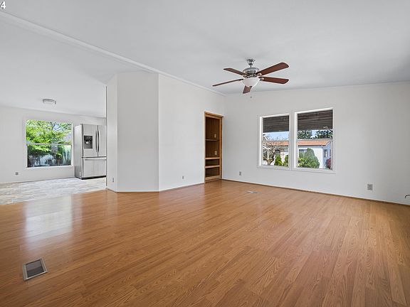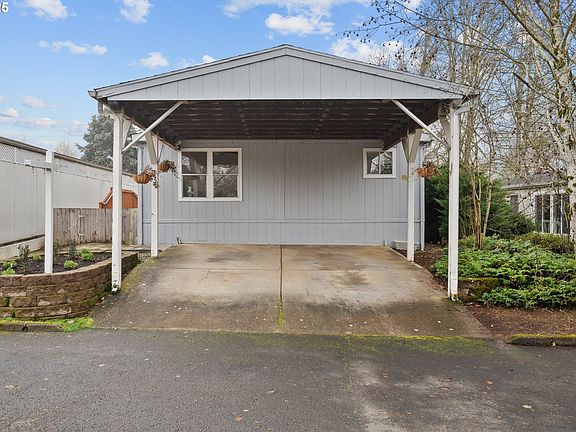 Discover this beautiful 3 bedroom, 2 bathroom manufactured home located in the peaceful and scenic Country Village Community in Oregon City. Spanning 1,188 SF, this home boasts numerous recent upgrades, including new flooring and paint throughout, updated kitchen cabinets and countertops, creating a fresh and inviting atmosphere. The spacious living areas include a large living room ideal for relaxation and entertaining, while the generously sized primary bedroom offers comfort and privacy. The large kitchen has plenty of space for your cooking gadgets with multiple cabinets and counter space. It will be easy to entertain with the open floorplan including the dining area in the kitchen. HALLWAY BATHROOM JUST REMODELED...new vanity, new mirror, shower reskimmed, new flooring, new fixtures. The most recent system updates include the roof which is ten years old and the furnace is 4 years old. The home is situated on a nice sized lot, fully fenced for added security and includes a Tuff Shed in the backyard for ample storage space. Parking is convenient with a two-car carport, and the home is located on a quiet street within a serene, park-like setting. Country Village Community welcomes all ages, making it a great option for families and individuals alike. One year home warranty with Fidelity National Title is included.