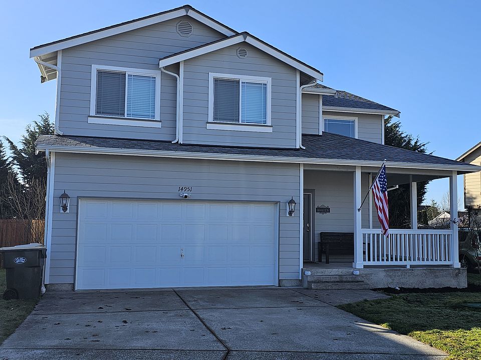 Welcome home to this beautiful spacious 4-bedroom, 2.5-bathroom home, perfectly situated in a cul-de-sac in the heart of Yelm. The spacious living area boasts a cozy gas fireplace with a TV insert, perfect for relaxing evenings. The open-concept kitchen is a chef's dream, offering stainless steel appliances, ample cabinet and counter space, a walk-in pantry, a center island, and a built-in office area ideal for work or study. Upstairs, the primary suite impresses with vaulted ceilings, a large walk-in closet, and a luxurious en-suite bath featuring a soaking tub and separate shower. The convenient upstairs utility room adds extra ease to daily living. Outside, enjoy a fully fenced backyard, great for pets, play, or entertaining. Located within walking distance to Yelm High School and offering a short commute to JBLM, this home is in a prime location! Don't miss out on this fantastic rental opportunity schedule a viewing today! Tenant responsible for lawn maintenance and all utilities. Pets are negotiable with nonrefundable fee. Max of 2 pets.
