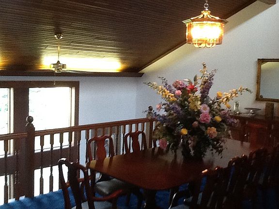 Main floor includes : attached two car garage, laundry room, large kitchen with cherry cabinets and Corian counter tops, dining room, guest bathroom with shower, sunroom, foyer, master bedroom with walk in closet, master bath, porch off bedroom with hot tub, deck across back. Lower level includes: staircase going to basement both ends of house, great room with insert in fireplace , kitchenette, large hall closet, office/bedroom, bathroom,furnace room with central heat and air and a wood burning furnace, two bedrooms with walk in closets. Property includes additional 3 car garage and lake house. 04/16/15