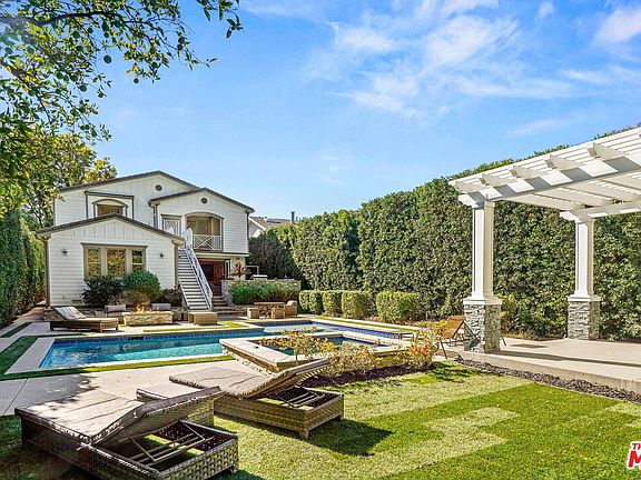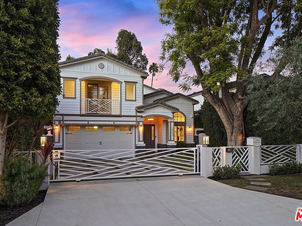 Nestled in prime Sherman Oaks just south of Ventura Blvd., this Cape Cod estate sits tucked away behind private gates and a lush front yard. Enter through the grand foyer boasting double-height ceilings, into the beautiful home replete with stunning white oak floors and custom built-in finishes and fixtures throughout. Large windows allow for abundant natural light to stream into the living room with a fireplace. There is ample space to cook and eat in the chefs kitchen with a center island and breakfast nook, which includes modern stainless steel appliances. The primary suite boasts a fireplace and expansive en-suite bathroom with a separate soaking tub and walk-in shower, as well as a double vanity. Enjoy the pool and spa in the private backyard with cabana, fire pit, and dining area perfect for relaxing or entertaining. New solar system, converted gym, automated smart home Crestron system, and gated driveway parking with 2-car garage complete this impressive offering.