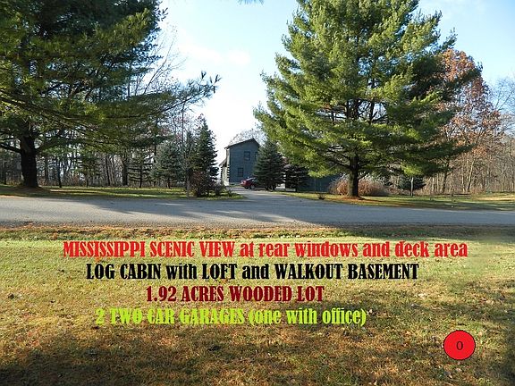 Beautiful scenic view of the Mississippi River, 1.9-acre wooded lot having a depth of trees, 2-bedroom log cabin with a walkout basement and upper loft area with available space for an additional bedroom. You will find lots of storage that includes a basement storage room, behind knee walls in loft, and two 2 1/2 - car garages (one with office) both with additional space for storage. Entertaining? The walkout basement includes a bar/entertainment center and a conveniently located bathroom. Imagine yourself in this park like environment nestled on a wooded ridge high above the Mississippi river's edge that includes the home of deer, turkeys, eagles, and a abundance of other wild life. Take the time to acquaint yourself with the amenities that you can find on the many descriptions, layout diagrams, and the mix of seasonal photographs that are included with this posting. It should answer many of your questions. Additional questions are always welcomed: 608-412-2717 or Email rhubbard01@centurytel.net *************************************************************** Yes, there is public provided services in this quaint rural community: fire and policing; school bus pick-up; road maintenance and snow removal; garbage and recycling curb service; local drop off large appliances at no cost; county once a year drop off of electronic devices and unwanted chemicals; each spring and fall a 3 day period with village dumpsters available for getting rid of unwanted items.
