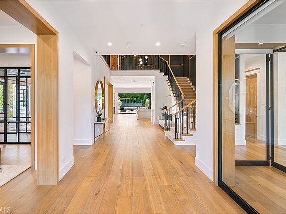 Situated on a sprawling lot on one of the most desirable streets in prime Sherman Oaks, resides this newer construction contemporary farmhouse. Enjoy a spacious open floor plan that flows seamlessly together and boasts top-notch amenities, such as wide plank wood floors and high ceilings throughout. The gourmet chef’s kitchen is equipped with a double island, walk-in pantry, top-of-the-line appliances and opens to the adjoining family room, which features an oversized pocket door that opens to provide a seamless indoor/outdoor living experience. Rounding out the main living space is a formal living room and dining room that’s separated by a glass enclosed wine cellar. Upstairs, the expansive primary suite consists of a sitting area with a see-through fireplace, private balcony, massive walk-in closet and sumptuous bathroom that includes a sizable steam shower, soaking tub and dual vanities. You will also find five ensuite bedrooms with walk-in closets, two of which are conveniently located downstairs and one is staged as a fitness center. Additional interior amenities include a large office, luxurious home theater, secondary family room upstairs, downstairs/upstairs laundry rooms and smart home automation that includes a security system and built-in speakers. Surrounded by mature landscaping, the beautifully landscaped backyard oasis offers the utmost privacy and is the perfect spot to entertain or enjoy al-fresco dining. It consists of an infinity edge pool/spa with a baja shelf, indoor/outdoor cabana with bathroom, covered patio, summer kitchen, grassy yard and sports court. Additionally there is a side courtyard with a built-in fire pit and the gated front yard was designed for easy auto access with a circular driveway and two garages. Excellent South of the Boulevard location, enjoy easy access to the Valley, Westside, 101/405 freeway and so much more.