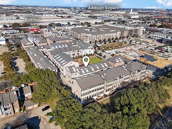 2 BEDROOM, 3 BATHROOM, 3 STORY TOWNHOUSE, WITH 2 CAR GARAGE IN THE HEART OF ADDISON ONLY 1 BLOCK TO BELTINE AND MIDWAY. Built in 2020, this beautifully designed townhouse is in an unbeatable location near everything plus overlooks a lovely tree-lined shared greenspace park to relax in or play fetch with a pet or a friend. Step inside and on the 1st floor you have a tandem 2-car garage with epoxy finished flooring and high ceilings that are great for storage systems. Head up to the 2nd floor and you have Living Area with vaulted ceilings, Spacious Kitchen with white quartz countertops, 42 inch cabinets, and Bosch Stainless Steel Appliances including Electric Oven, Gas Cooktop, Dishwasher, Microwave, Wine Fridge, and Full Sized Refrigerator. Off the Kitchen is also a Hal Bath and Pantry Space. Luxury Vinyl Flooring Throughout with Wood Stairs and Plantation Shutters on Windows. The 3rd Floor has Laundry Space with included Stackable ThinQ Washer and Dryer, Guest Bedroom with Ensuite Bathroom, and Primary Suite with Large Bathroom, Personal Hallway, and Bedroom with Ceiling Fan. 3D Tour and floorplan available online. This home is available for immediate move-in and easy to apply for by scanning the QR code in the last photo or in the house. Minimum 1 year lease