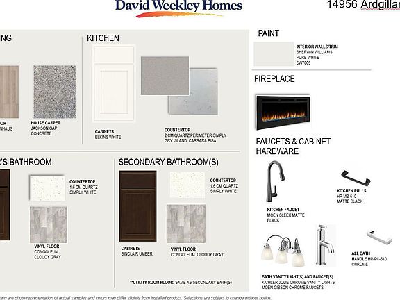 For the very first time David Weekley presents a 5 bedroom home with a finished basement. This incredible home features an amazing kitchen with sink on the perimeter with window and dining area, with tranquil views of the back yard. Entertain guests in the open concept that flows right into the large great room, which features a sleek electric fireplace! Upstairs, unwind in your massive Owners' Suite with ample walk in closet! Three more bedrooms, laundry, and a full hall bath complete the upper level! Outdoor Amenities galore, Pickleball courts, dog park, 2 playgrounds, trails and more!