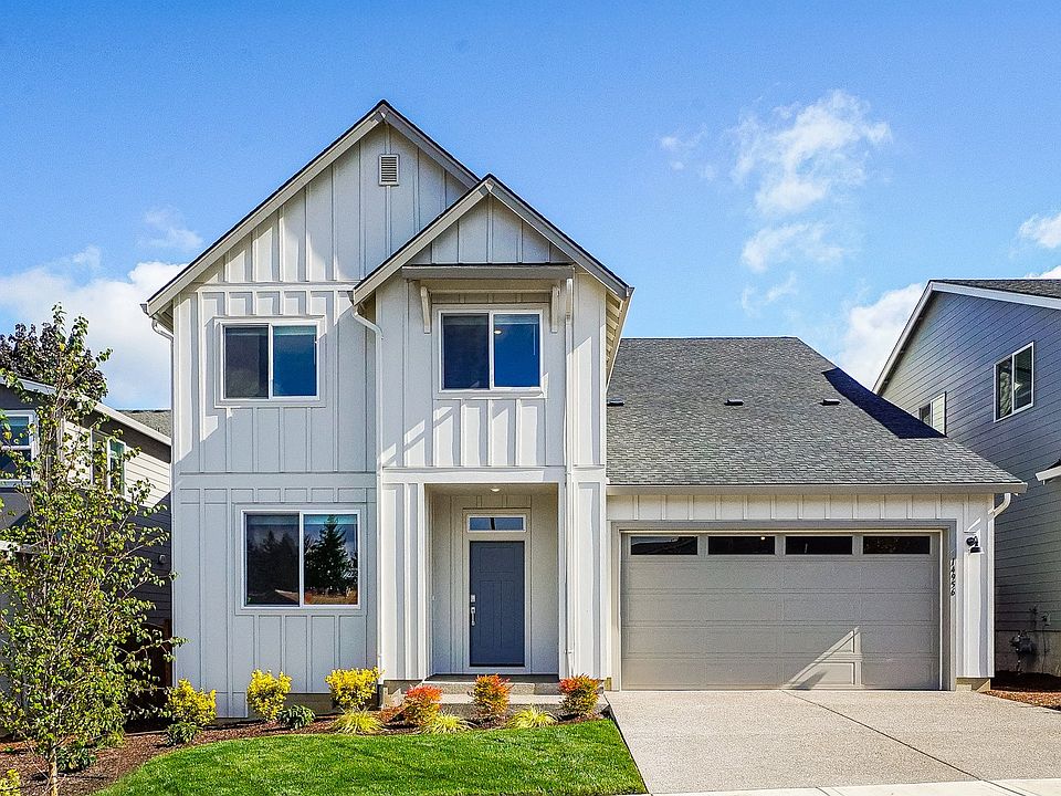 This new construction two-story home is located in a planned community with multiple parks, close to schools, shopping, dining, and freeway access. The Sellwood plan includes a den near the entry, a main-level bedroom at the back, and an open-concept kitchen, dining area, and great room with fireplace that flow to a covered patio. Upstairs, four bedrooms and a bonus room surround the private primary suite with retreat space, soaking tub, and walk-in closet. Interior finishes include quartz countertops, shaker-style cabinets, LVP flooring, and two-tone paint. This home also includes central air conditioning, a refrigerator, washer and dryer, and blinds—all at no extra cost! Located on homesite 56, this home is move-in ready! Rendering is artist conception only. Photos are of a similar home, features and finishes will vary.