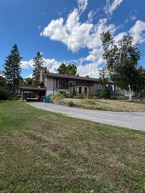 Outstanding property with over 2 acres of privacy close to Peterborough. Includes approximately 1900 sq.ft. bungalow with attached garage, detached garage/shop and grounds that show like a park. Home is finished on both levels with 3 bedrooms on main level and 4th bedroom down. Two entrances from front of house, includes off of front porch into living room and another into a mudroom for those wet or snowy days. Kitchen is open concept with dining area, hardwood floors, granite and quartz countertops with a walkout to large deck over garage. Large primary bedroom with spectacular 4pc ensuite. The finished basement has a walkout to the garage and from there out to the backyard and patio. There is a very large area beside house that maximizes privacy and could be used for recreation or installation of a pool. The shop has a 14 foot overhead door, large compressor, has its own well, heated by oil but needs an updated oil tank, high clear ceiling height with mezzanine. Absolutely perfect setup for a trades man, car person or area to store and work on your toys! The large living room was once an indoor pool area that has been closed in with engineered floor joist and covering (could be converted back). This is a rare find located just minutes from town.