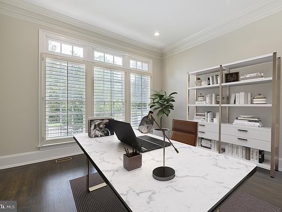 Nestled within the prestigious gated community of Evans Farm, this rare Belvedere model offers the ultimate in luxury living complete with an elevator. From the moment you step inside, the elegant entry foyer sets a refined tone, flowing seamlessly into the formal living and dining rooms. The gourmet kitchen is a chef’s dream, featuring top-of-the-line appliances, a spacious breakfast area, and a convenient butler’s pantry. The kitchen opens to a cozy family room with a fireplace and walk-out access to the inviting private patio, perfect for morning coffee or evening entertaining. A dedicated office and a powder room complete the main level. Upstairs, the expansive owner’s suite is a true retreat, boasting two generous walk-in closets and a luxurious bath with separate vanities, a jet tub, and a separate shower. Two additional bedrooms grace this level, one with its own private bath and another served by a hall bath with dual vanities. The third floor offers a private suite with a bedroom, full bath, and a charming sitting room, ideal for guests or an au pair. The lower level impresses with a spacious recreation room featuring a fireplace, wet bar, and lounge area, plus a fitness room, bonus room, and a dedicated laundry room. Evans Farm is one of McLean’s most sought-after communities. A serene, European inspired enclave of 143 luxury homes set on 24 beautifully landscaped acres. Residents enjoy the charm of the original Evans Farm Pond, a historic water mill, and the community’s club house. With security cameras at both gated entrances, lush walking paths, intimate park spaces, and brick sidewalks, this neighborhood offers peace of mind and exceptional walkability. Perfectly located just inside the Beltway, Evans Farm offers quick access to I-495, Route 123, and the GW Parkway, the Silver Line Metro, Lewinsville Park, downtown McLean, Tysons Corner, and a wealth of shopping and dining options.