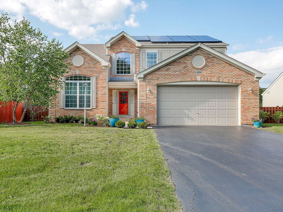 Truly move-in ready. Sunny and Bright! Well-designed and practical layout. Plenty of room for Everyone! 5 Bedrooms, 3 Full Bathrooms and 1st floor office. Large kitchen with center island, bonus cabinets & counter, large pantry. Fully finished basement with bedroom (Custom Closets) and Full Updated Bath. All hardwood on 1st floor. Upstairs: Only 2 bedrooms have carpet (NEW 2021). Updated 2nd floor bath with beautiful tile and glass doors. Large concrete patio with built-in fire pit. Fenced yard. High Efficency American Standard furnace with electric air filter installed in 2021. High Efficency Navien Tankless Water Heater. Electric charging station installed in the garage. SUNRUN Solar Panels installed 2022. Nest Doorbell, Nest Thermostat, Nest Security Cameras in place. Recently painted - move-in ready. Excellent home!