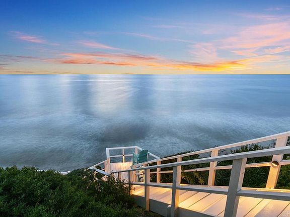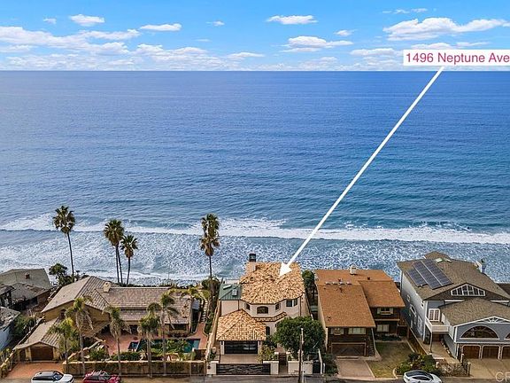 Welcome home to 1496 Neptune Avenue in Encinitas…the coveted street’s most spectacular oceanfront property with pristinely private beach access year round. Entirely remodeled in 2020, this approx. 3000 sqft stunner boasts all new electrical, plumbing, interior and exterior walls with elegant designer finishes and upgrades throughout. Professionally and impeccably maintained lighted stairs with ocean flood light and sound system, plus coastal commission compliant seawall, bluffside yoga deck, convenient beachfront storage, upper and lower gates for optimal safety and security. Through the authentic tibetan front gate and inside the privacy of a powder-coated stainless steel automated car gate, a fully enclosed front courtyard boasts a world-class Koi pond, specimen plumerias, custom glass 2-car garage door, stunning Santa Barbara exterior finish, triple tile roof, copper rain gutters and gorgeous new walnut and frosted glass front door. Stunningly upgraded throughout with radiant heat flooring, 2 interior and 2 exterior fireplaces, fully automated sheer and blackout blinds, Lutron lighting system, Yamaha interior and exterior audio system, walnut doors, Toto toilettes, custom storage and built-ins, and never ending ocean views. The entry floor offers Marble Flooring, Professional Chef’s Kitchen with Mia Cucina custom cabinets, Subzero refrigerator/freezer, wine refrigerator, Bertozoni 6-burner gas range + griddle and steam oven, guest bedroom with ensuite bath, plus additional oceanfront bedroom and full bathroom with custom Mia Cucina cabinets and hand-painted lotus tile, plus beautifully functioning elevator to the upstairs primary retreat. Upstairs, the primary suite with Porcelanosa flooring with radiant heat, exterior and interior fireplaces, vaulted ceilings, panoramic ocean view plus 2 separate adjoining decks. Stunning bathroom suite with steam shower, designer tile, extra large bath tub, dual sinks, vanity, walk in closet with built-ins. Breathtaking oceanfront gym with folding Anderson glass doors, and side sliding glass window. Lower level offers a separate guest suite complete with kitchenette, luxury full bath, ductless heating and air, Scotsman Ice Maker. Expansive under-home storage, including housing two tankless water heating and in-floor heating systems. Large exterior decks with Tucci automated umbrellas, custom canopy, and deluxe standing jacuzzi. THIS HOME IS A MUST SEE!