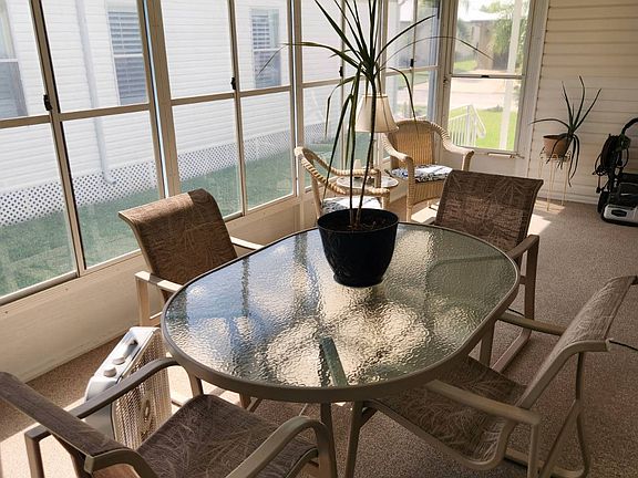 Welcome Home! This meticulously maintained 2-bed/2-bath oasis awaits your arrival. This level 2 home gives peace of mind knowing it can withstand 140 mph winds for your protection. In addition, you will appreciate the private backyard with lush tropical foliage for enjoyment of tranquil days and evenings outdoors. This home is located in the highly sought-after 55+ golf course community of SPANISH LAKES FAIRWAYS in beautiful Fort Pierce, Florida. FEATURING a wonderful floor plan that lets you move around with ease, it has a split bedroom floor plan to allow privacy for you and your overnight guest. The delightful and spacious guest bedroom boasts a Jack-n-Jill bath, while your Primary bedroom is equipped with a walk-in closet and en suite. Find tranquil rejuvenation in this retreat to awake refreshed for another day in paradise. Beautiful laminate plank flooring adorns this home, while ceramic tiled bathrooms allow for easy maintenance. Updates include: Newer Vinyl Plank Flooring throughout in 2023, newer gutters and downspouts in 2023, and a newer kitchen faucet and light fixture over the sink in 2024. Newer washer and Dryer in 2023, a HOT WATER HEATER in 2023, and window screens in 2024. In the heart of the home, entertain in your spacious and inviting dining area just off the kitchen and living room. Bring your culinary skills alive in the lovely kitchen, which has plenty of cabinets and counters, and the dedicated Laundry room is just off the kitchen for ease of daily chores. Relax in the large Florida Room with vertical windows and screens, where you can sip morning coffee and take in private views of nature and the peaceful wooded backyard. All appliances stay, and guest bedroom furniture stays as well. This gorgeous home awaits your arrival! The Lot rent is $944 per month and includes lawn care, trash, and use of all the amenities: an 18-hole golf course, a guest pool, resident pool, gym, billiard tables, card room, library, and more. Spanish Lakes is just 10 minutes to the nearest grocery store, or 15-20 minutes to more shopping in the adjacent town of Vero Beach. Travel 20-25 minutes to downtown Fort Pierce, where you can enjoy the Farmers Market on Saturdays, theaters, restaurants, and beaches. Interstate 95 is 10 minutes away. Buyers must go through the Spanish Lakes approval process, $100 per person. Water is $492.00 per year. Applicants with pets looking to purchase in a non-pet lot must have the proper documentation stating the pet is an emotional support animal. Whether you are looking for a home year-round or a seasonal getaway, there's never been a better time to begin the leisure and lifestyle you deserve. Please call today for your private viewing of this spectacular home! All listing information is deemed reliable but not guaranteed and should be independently verified through personal inspection by appropriate professionals. Our company does not and cannot guarantee or warrant the accuracy of this information or the condition of this property. Measurements are approximate. The buyer assumes full responsibility for obtaining all current rates of lot rent, fees, and pass-on costs. Additionally, the buyer is responsible for obtaining all rules, regulations, pet policies, etc., associated with the community, park, or home from the community/park manager. Our company is not responsible for quoting said fees or policies. Financing is available through 3rd party lenders. The sales price does not include tax, dealer fees, or administrative fees. Please contact the sales agent for additional information.