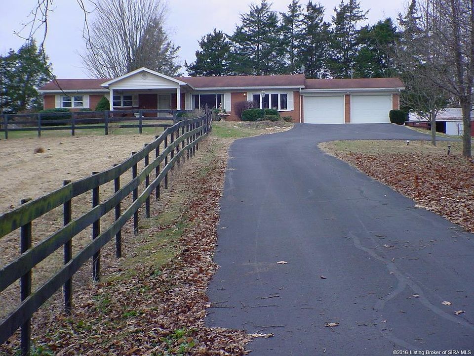 NEW ROOF "REDUCED over $34,000." Wow. HORSE FARM. FENCED-2 BARNS (both 30 x 40) 1 has 5 stalls/run in area also. 1896 sq ft living space. Awesome picture perfect setting 14 miles from Exit #119 Greenville. Easy driving distance to Lou. Ky. Location-location. Immaculate 1 level ranch home with basement & 2 car attached garage. Long blacktop driveway leads to this country setting with home overlooking the pasture. Must see prop. Possession at closing. Enjoy the 20 x 24 sunroom in rear with seperate heat system, wet bar, work area. Kitchen offer custom Oak cabinetry, Island breakfast bar, all appliances remain. A matching work station/computer setup between kit and dining rm. A cozy step down sitting area 13 x 12 open to kitchen makes this area very entertaining. Lots of oak hardwood flooring in this well maintained home. Impressive to say the least in and out. 2 parcels make up this mini-farm which the land has great contour. Partial unfin basement/laundry area, plenty of area to finish if so desire. Barns have elec, 1 has water. spi