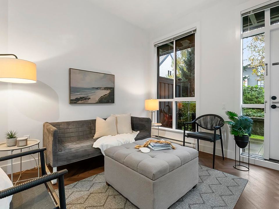 A rare blend of condo living with your very own private yard. Welcoming you into this bright and inviting ground-floor home in the popular Guildhouse community by Mosaic. This 2-bedroom, 1.5-bath suite offers 807 sq.ft. of thoughtfully designed living space with 10 ft ceilings and a spacious private yard—perfect for morning coffee or quiet evenings outdoors. Inside, you’ll find modern finishes throughout, from stylish flooring and tile work to sleek kitchen cabinetry. The open layout feels fresh and comfortable, ideal for everyday living or entertaining. Located just steps from Guildford Town Centre, parks, and transit, this home combines convenience, comfort, and contemporary style in one of Surrey’s most walkable neighbourhoods.