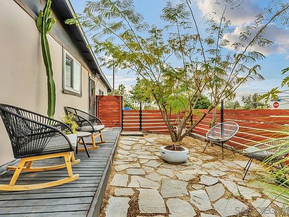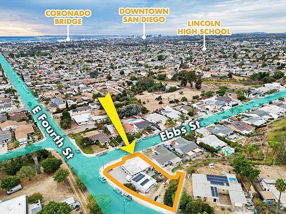 Welcome to your dream home in San Diego! Situated on a spacious 9,100 SF corner lot in the sought-after Alta Vista neighborhood (92114), this stunning single-story, mid-century gem offers 4 bedrooms, 2 bathrooms, and endless upgrades. Inside, enjoy wood accent walls, vibrant wallpaper, wood plank flooring, custom tile, quartz countertops, and a private primary suite with a spa tub and walk-in closet. The backyard is perfect for entertaining with a tiki bar, playground, turf, view deck, slate paver patio, and dog run. A massive 768+ SF shop/garage includes loft storage, 220V electrical, air compressor, and space for 8+ cars, plus gated RV parking. Southwestern exposure offers stunning views of the San Diego Bay, Coronado Islands, and Baja on clear days. Approved plans to expand the home by 794 SF and add a 607 SF ADU with ocean-view deck create incredible potential. Recent upgrades include solar panels, updated plumbing and sewer line, a new water heater, and furnace. Just minutes from freeways, downtown, Coronado, and top beaches, this turnkey home combines style, convenience, and value. Don’t miss this rare find.