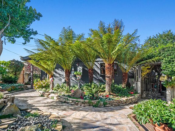 This uniquely Zen, one of a kind treasured property, home and guest house were lifted off the pages of a storybook and placed here at 1497 Highland Place. A custom designed gate and fence welcomes your arrival. Beyond the winding stone path sits this charming 1268 sq ft home surrounded by a beautiful professionally designed sanctuary garden. A whimsical home with color, arches, wood beam ceilings, stained glass, a Dutch door and multiple French Doors. This enclosed property invites serenity with a hot tub, an outdoor shower, water features and a fire pit. A spacious living room with a fireplace opens to the family room/dining room with garden views. An open kitchen complete with a wood burning stove, open beam wood ceilings and green tile counters.The laundry room off of the kitchen and has a sweet stained glass dutch door. A primary bedroom with a sitting room allows for plenty of natural light with three French doors and a wood burning stove, too. The blue tile hall bathroom displays a beautiful stained glass window. Located on a quiet cul-de-sac Street within the upper Seaside sunbelt neighborhood. Enjoy easy access to General Jim Moore, Golfing, Ryan Ranch, Stone Creek Shopping Center, Restaurants, Highways and all the Monterey Peninsula offers.