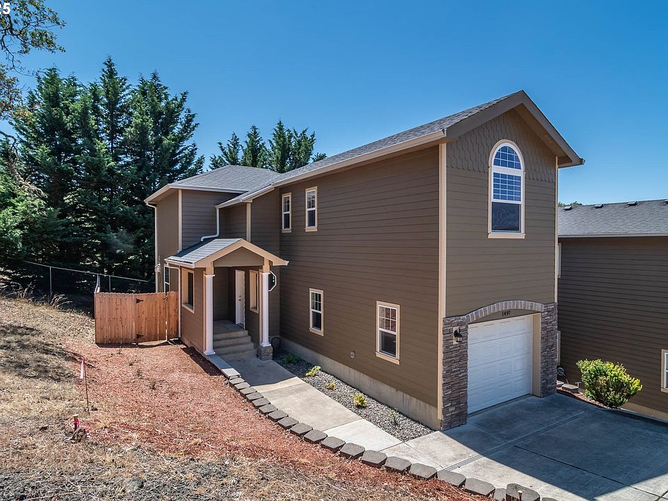 Welcome to this stunning newly completed detached condominium located in a quiet, desirable neighborhood in beautiful Roseburg, Oregon. This end-unit home offers exceptional privacy and sweeping mountain views, perfect for enjoying peaceful mornings and tranquil evenings. Boasting 3 spacious bedrooms and 2.1 modern baths, this thoughtfully designed home features an open-concept living area with a cozy gas fireplace and sleek stainless steel appliances in the kitchen. The home is equipped with efficient ductless heating and air conditioning, ensuring comfort year-round. Enjoy outdoor living in your fully fenced yard, ideal for pets, gardening, or relaxing in your own private oasis. Additional highlights include an attached garage, private driveway, and the rare benefit of being a detached condo, combining the convenience of condo living with the space and feel of a single-family home. Don't miss this unique opportunity to own a low-maintenance, move-in ready home with modern finishes and gorgeous natural surroundings. Schedule your tour today!