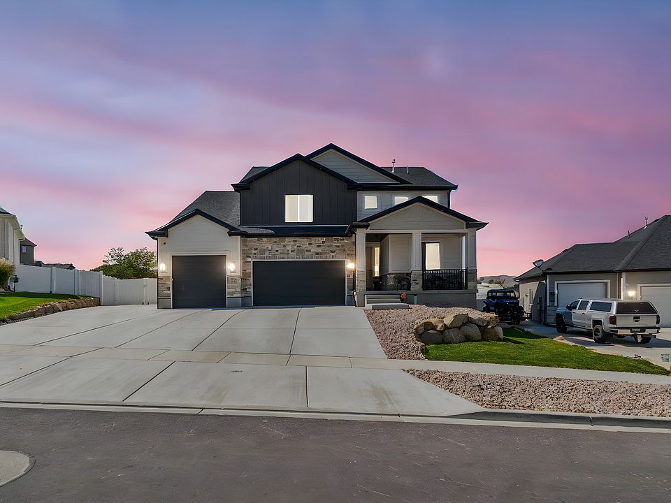 Recent price improvement! Seller is motivated! Welcome to this Stunning 4-bedroom, 3.5-bathroom home in a prime location, situated on an expansive .39-acre lot. This meticulously designed residence boasts a 3rd car garage with extra height, 36 ft deep RV pad, and E.V. plug for ultimate convenience. Eco-friendly solar panels and "Trimlight" permanent exterior lighting enhance the home's modern appeal. Inside, enjoy 9-foot ceilings on both the main floor and basement, creating an open and airy ambiance. The gourmet kitchen features a massive walk-in pantry, double ovens, massive serving island, perfect for culinary enthusiasts. Don't miss this rare opportunity to own a luxurious, energy-efficient home in a fantastic neighborhood!