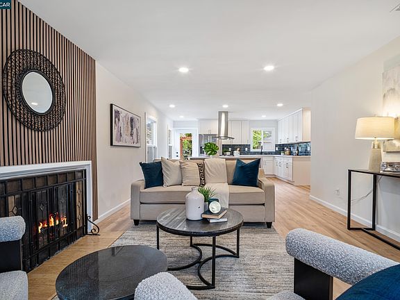 Step inside this beautifully updated San Leandro home offering 3 bedrooms and 2 stylishly renovated bathrooms in the main house. Newly painted inside and out, and recently updated with new flooring, lighting, + much more! This home features a light-filled living room with cozy fireplace that flows into the dining area and stunning kitchen. The kitchen is designed for both cooking and entertaining, complete with white shaker cabinets, a statement blue tile backsplash, stainless steel appliances, a floating hood, and a gas range for every culinary delight. The expansive quartz waterfall island doubles as a breakfast bar for casual seating. Unwind in either spa-like bathroom, choose from a walk-in shower or luxuriate in the tub. The generous bedrooms provide comfort and flexibility for your needs. Step outside and find inviting yards with mature fruit trees, garden beds ready for planting, a private well, and a serene seating area. This home also includes a 630 SF detached ADU with a flexible 4th bedroom, 3rd full bath, living area, and office, perfect for extended family, guests, or rental income. Located near Lake Chabot, parks, shopping, dining, commuter routes and transit, this home blends modern style with everyday functionality. Come experience all this San Leandro gem offers.