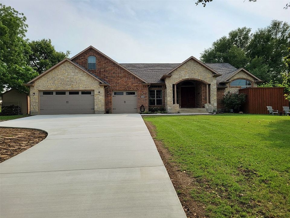 A RARE find! Beautiful 1.5 story brick & stone home on 1.55 acres! Home features 3792 sq ft of living area including 5 bedrooms, one that can be used as flex space with a rooftop balcony deck, 3 full baths, 2 half baths, 2 living areas, 2 dining areas, & wet bar. Large owner's suite includes gorgeous en suite with glass tile walk-in shower, jetted garden tub, and massive walk-in closet! Home is conveniently located north of Forney outside city limits. No subdivision, MUD or city tax. You will LOVE hosting from the well-appointed kitchen with elegant granite counters, oversized island that accommodates 6 barstools, stainless steel appliances, and accent lighting. Kitchen opens to main living room with wood burning fireplace set as the centerpiece, & breakfast nook. Den comes complete with a coffee bar and opens to the formal dining area. 3-car garage and large patio and backyard perfect for entertaining, with oak peach, pear & magnolia trees. Beautiful country living awaits! *MUST SEE*