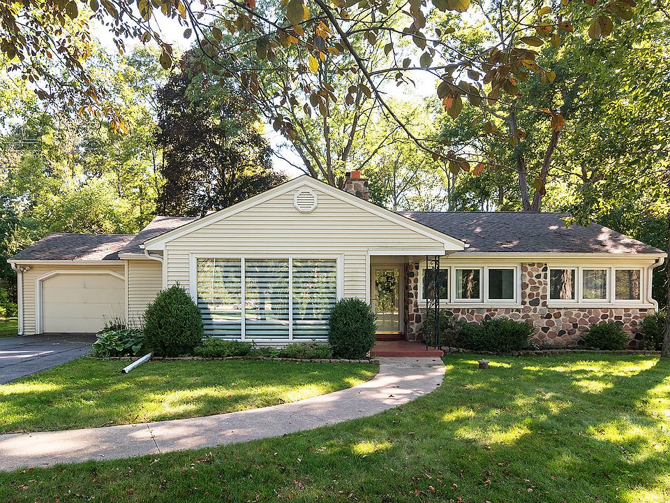 You will enjoy entertaining in the open-concept living area of this 3 bedroom, 1.5 bath ranch in Elm Grove. Large living/great room with striking 2-way NFP, lots of windows and a formal dining area. Updated eat-in kitchen with granite counter tops, SS appliances, Laminate floor, lots of cabinets, 2 skylights, vaulted ceiling and sliding door leading to the patio. Updated half bath. Main bath has large vanity with granite counter and ceramic tile floor. HWF's in bedrooms and great room. Large park-like yard with mature trees. 1.5 car attached garage that offers extra storage space.