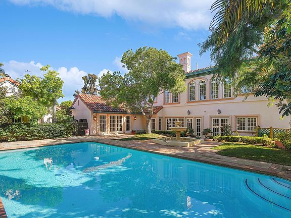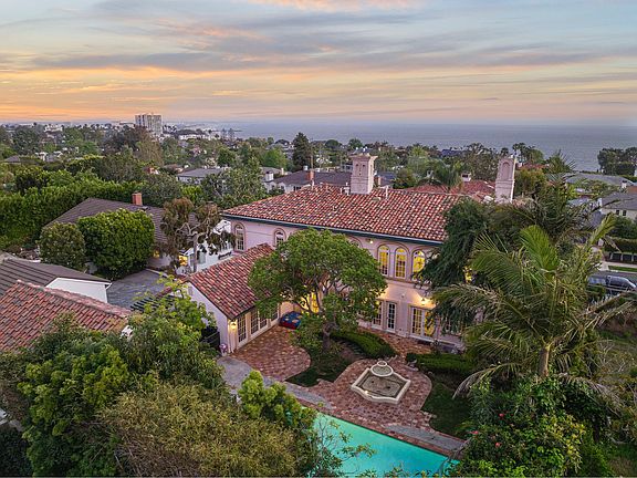 Situated on one of the most coveted streets in the Huntington Palisades, this two-story Traditional Mediterranean estate offers an entertaining paradise. From the moment you enter, you are welcomed by a grand staircase and views directly to the serene backyard. Spacious floorplan throughout offers 6 bedrooms and 6 bathrooms plus additional bonus/lifestyle rooms. The home provides 5,700sf of living including a formal Dining Room, stately Living Room, Library and Office. Additionally, there is a bonus recreation room with wet bar and French doors opening to lush backyard. Step out back to the extensive backyard full of lush greenery and mature trees featuring and a large swimmers pool and numerous gathering spaces. Upon ascending to the second story you will find 4 generously sized bedrooms. Both the Primary Suite and Junior Suite patios offer views of the Ocean and "Queens' Necklace" of Santa Monica Bay. Primary Suite contains a fireplace, 2 walk-in closets and additional office room which can be turned into more closet or 6th bedroom/Nursery. Cherrywood cabinets in the kitchen and a blend of granite and wood floors throughout. An opportunity awaits for someone to put their desired custom touch on this grand villa.